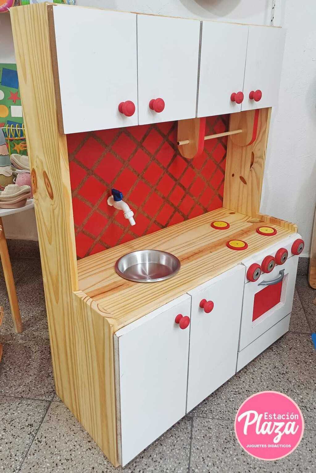 Fabricada en madera de alta calidad, es segura y duradera. Sus puertas se abren con herrajes de alta calidad, también se mueven las perillas de la cocina.