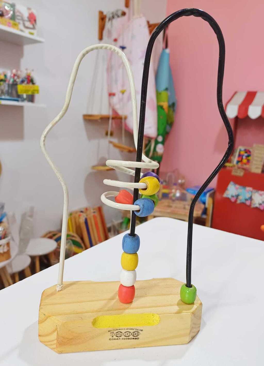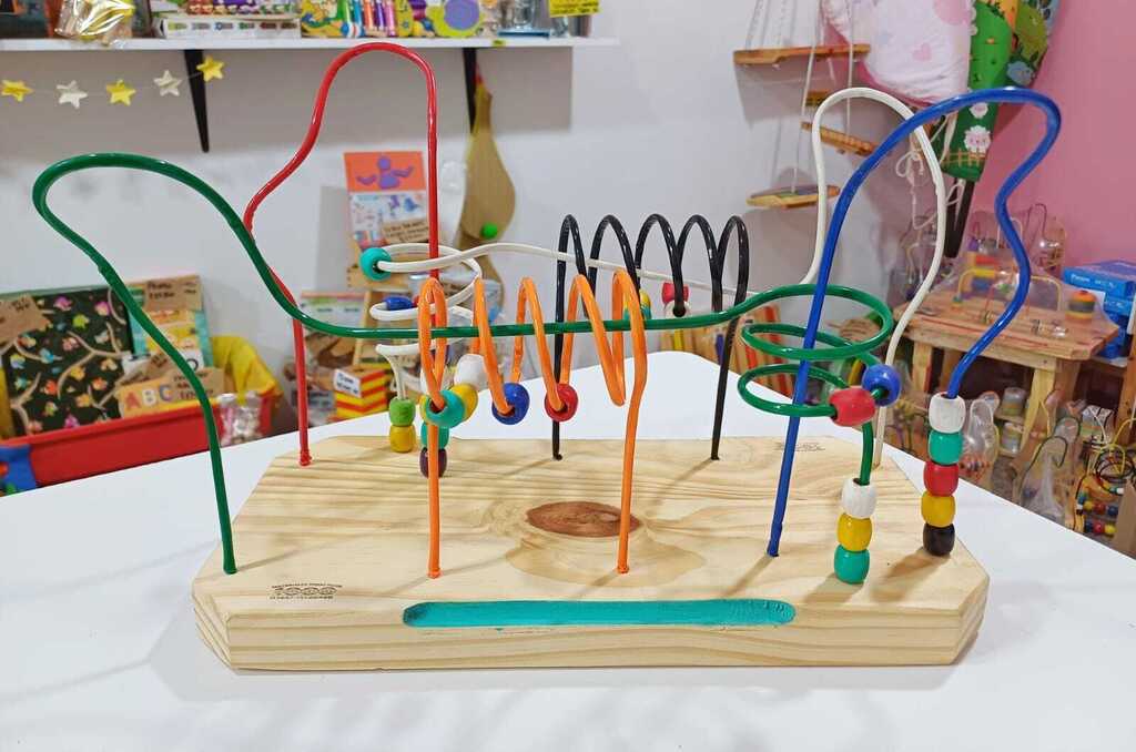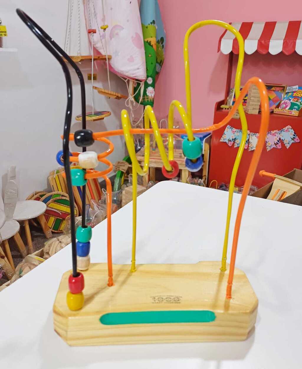 Laberintos de madera con ejes de acero forrado con cuentas de madera.