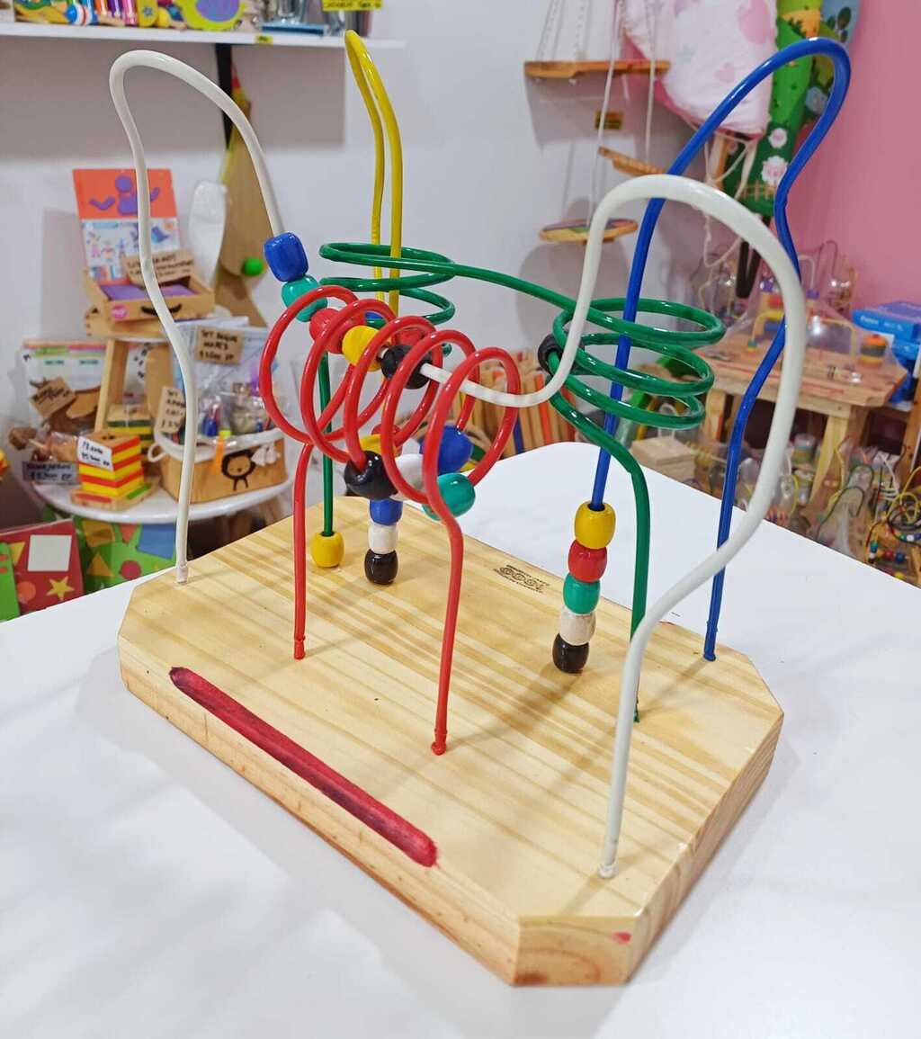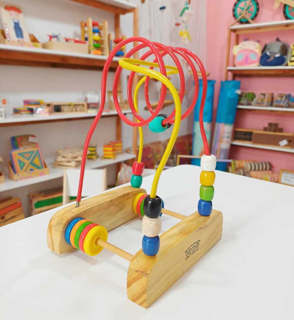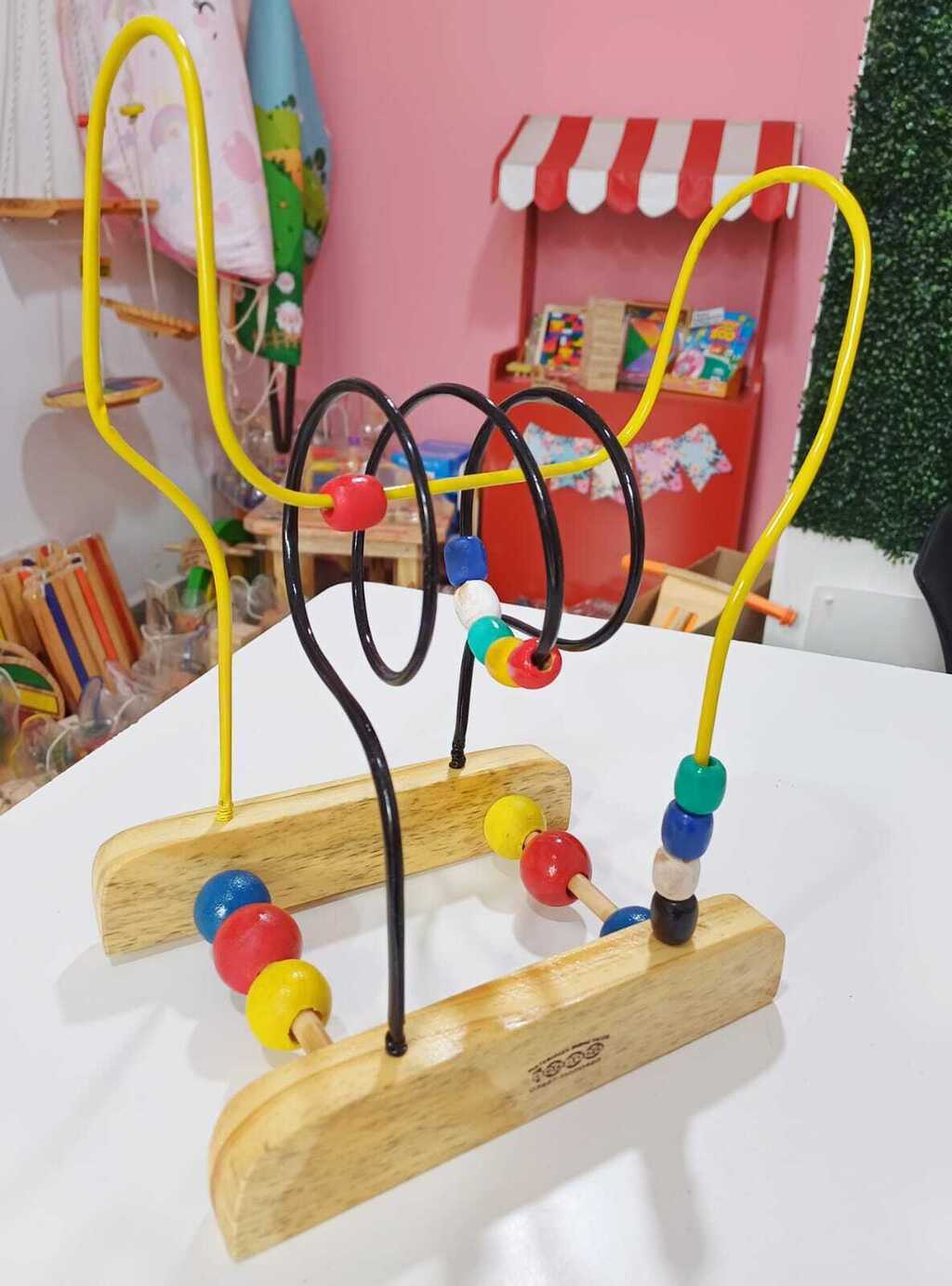 Laberintos de madera con ejes de acero forrado con cuentas de madera.